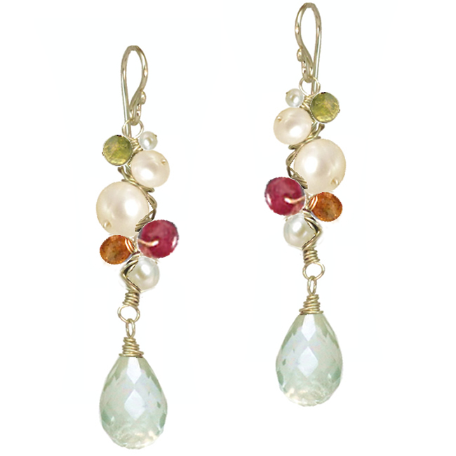 Branches of peridot, pearl, ruby, mandarin garnet, and green amethyst, about 1-3/4" long.