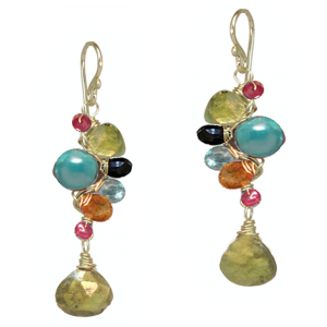Branches of ruby, peridot, pearl, apatite, turquoise, mandarin garnet, and vessonite, about 1-3/4" long.