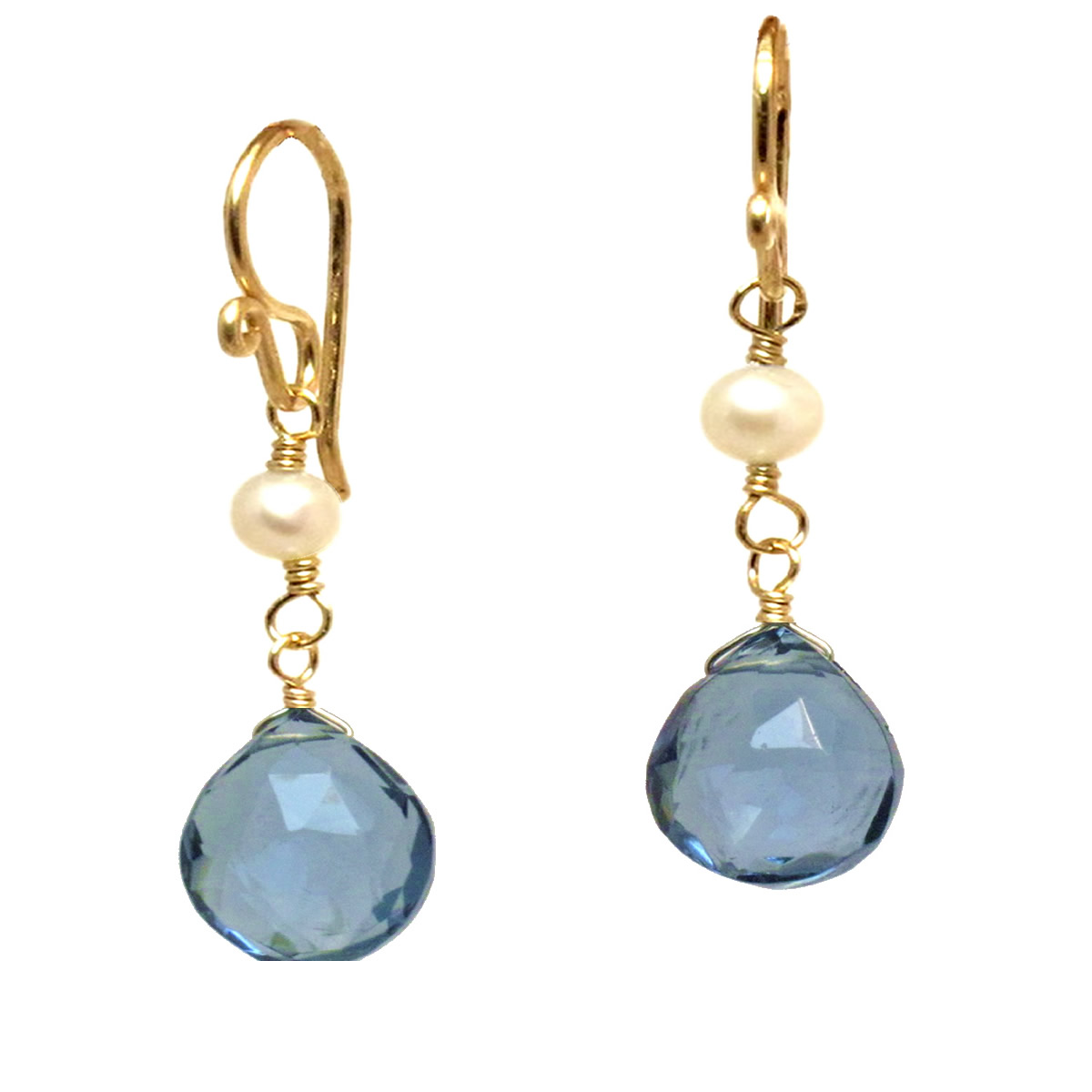 Ivory pearl with london blue quartz, about 1-1/4" long.