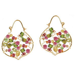 Hammered hoops wrapped with citrine, carnelian, perdiot, and ruby, about 1-1/2" long.