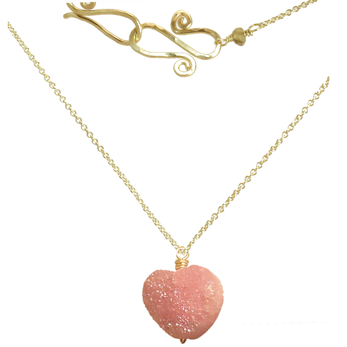 Pink druzy heart on fine chain, about 18" long. Custom lengths available, contact us for price.