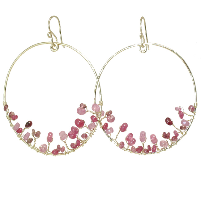 Hammered circles with choice of stone, about 2" long.