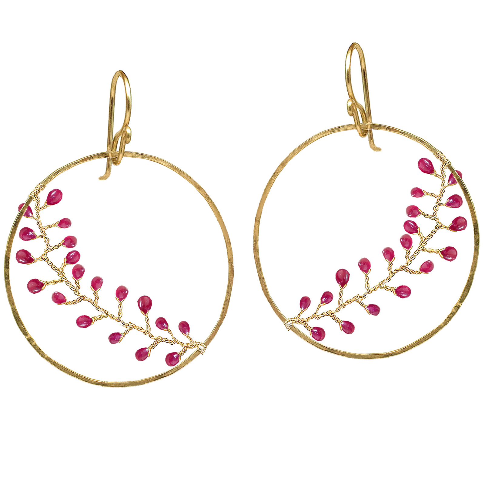 Hammered hoops with twisted vines of ruby, approx. 1-3/4" long.
