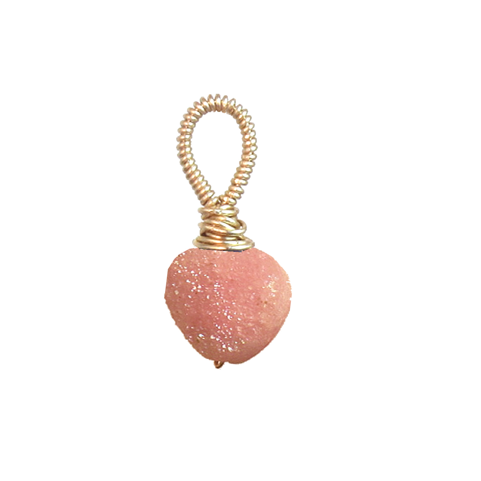 Wire wrapped pink druzy heart pendant, for necklace chains, you can also place these on the bangle-cuffs.